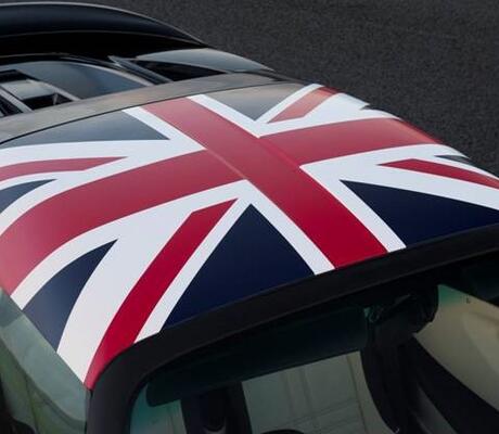 Le toit et les coques de rétroviseurs peuvent être ornés de designs graphiques de drapeaux, y compris l’Union Jack, drapeau du Royaume-Uni, donnant ainsi un coté emblématique à la voiture.