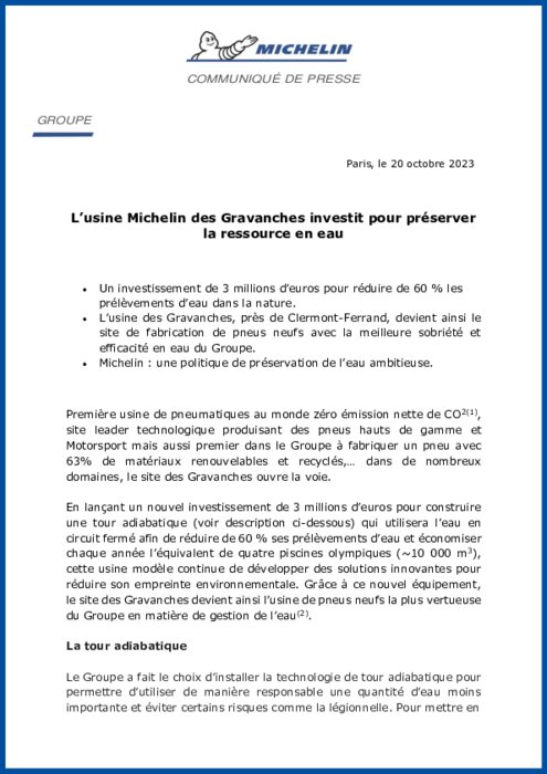 Equipementiers 20 octobre 2023 - 11:31 Un investissement de 3 millions d’euros pour réduire de 60 % les prélèvements d’eau dans la nature. PDF (137 Ko) Télécharger