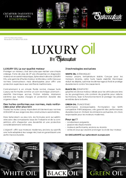 LUXURY OiI, La sur-qualité moteur by SPHERETECH