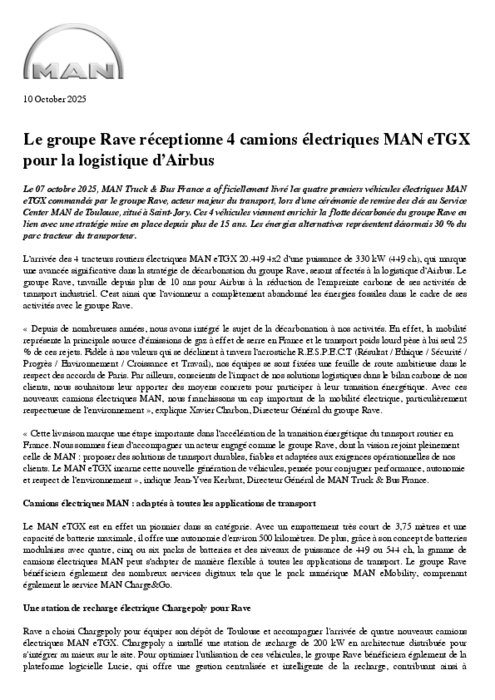 Man Truck et Bus livre 4 MAN eTGX au groupe Rave