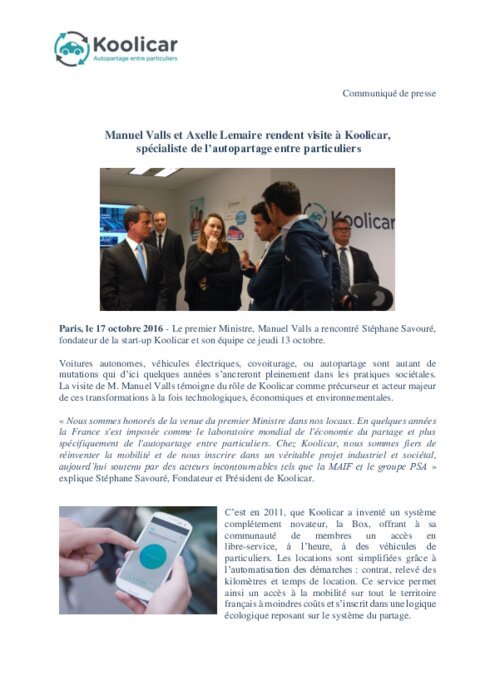 La visite de M. Manuel Valls témoigne du rôle de Koolicar comme précurseur et acteur majeur de ces transformations à la fois technologiques, économiques et environnementales