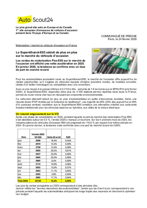 Pour les automobilistes souhaitant rouler au Superéthanol-E85, le marché de l’occasion offre aujourd’hui de réelles opportunités, qu’il s’agisse de véhicules équipés d’origine (première monte), de modèles convertis, (dotés d’un boîtier homologué)ou compatibles avec une conversion.