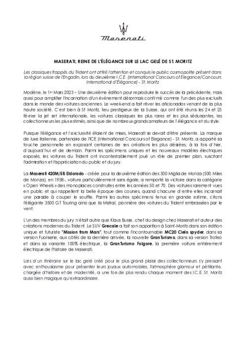 de luxe italienne, partenaire de l'ICE (International Concours of Elegance) - St. Moritz, a apporté sa