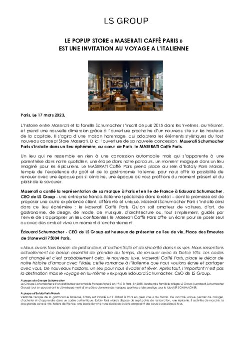 Maserati Schumacher Paris s’installe dans un lieu éphémère