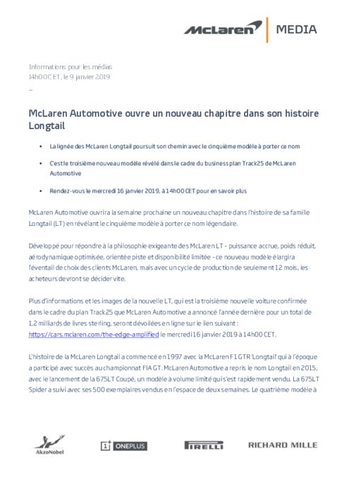 Plus qu’une semaine d’attente et le troisième modèle révélé dans le cadre de son business plan Track25, il permettra d’ouvrir un nouveau chapitre de l’histoire Longtail (F1 GTR Longtail, 675LT Coupé, 675LT Spider, et plus récemment la 600LT Coupé). Puissance accrue, poids réduit, aérodynamique optimisée, orientée sur les performances sur piste et disponibilité limitée seront les maitres-mots de ce nouveau modèle à l’instar de ses ainées.