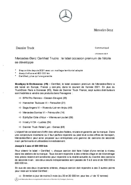 Certified, le label occasion premium de Mercedes-Benz a été lancé en Europe, France y compris, dans le courant de l’année 2021. En plus du TruckStore Paris à Gonesse (95), filiale de Daimler Truck France, sept autres distributeurs sont habilités à vendre ces produits dans l’hexagone.