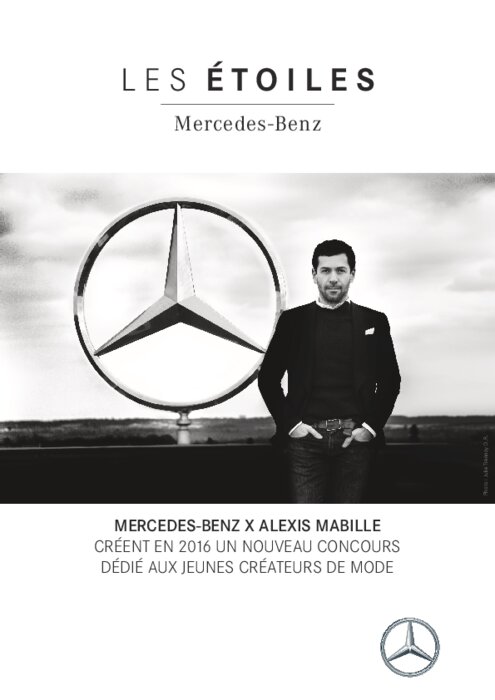 Mercedes-Benz est le partenaire de la mode à travers le monde depuis 20 ans et désire s’engager toujours plus aux côtés de la jeune création française. De cette démarche est né un programme ambitieux dédié à la mode : Les Étoiles Mercedes-Benz. Approché par la marque pour son talent et sa sensibilité à la jeune création, Alexis Mabille assure la présidence du jury et la cohérence de la ligne artistique.
