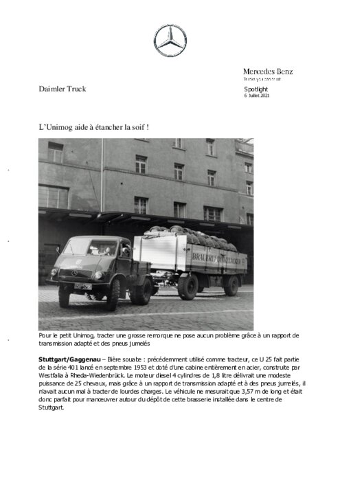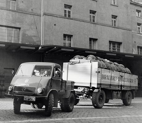 Bière souabe : précédemment utilisé comme tracteur, ce U 25 fait partie de la série 401 lancé en septembre 1953 et doté d'une cabine entièrement en acier, construite par Westfalia à Rheda-Wiedenbrück. Le moteur diesel 4 cylindres de 1,8 litre délivrait une modeste puissance de 25 chevaux, mais grâce à un rapport de transmission adapté et à des pneus jumelés, il n'avait aucun mal à tracter de lourdes charges...