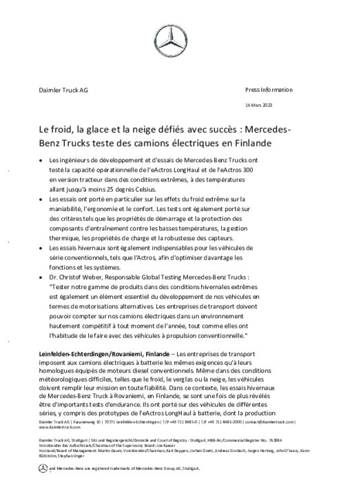 Mercedes-Benz Trucks teste des camions électriques en Finlande