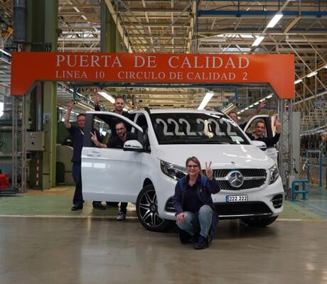 La production de la Classe V a débuté en mars 2014 à Vitoria-Gasteiz. Depuis mai 2019, la nouvelle Classe V fabriquée à Vitoria bénéficie d’une nouvelle face avant, d’une nouvelle génération de moteur (l’OM654), une transmission automatique 9G-TRONIC ainsi que des systèmes de sécurité et d'assistance de pointe. Elle pourra être commandée courant décembre avec le désormais bien connu système à commande vocale intuitive MBUX. Tombée de chaîne en novembre, la 222 222 222e Classe V - peinte en blanc cristal de roche - a été expédiée vers l'Allemagne.