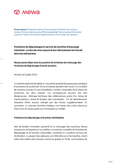 Mewa propose sa fontaine de dégraissage à haute pression
