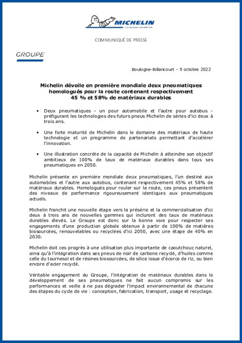 Voir aussi le communiqué Michelin ci-dessous