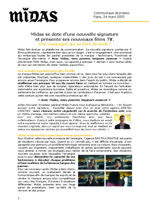 Midas fait évoluer sa plateforme de communication. Sa nouvelle signature, portée par 8 films publicitaires, représente bien plus qu’un slogan, c’est un engagement. Une promesse qui embarque toutes les parties prenantes de la marque : techniciens, franchisés et l’enseigne elle-même.