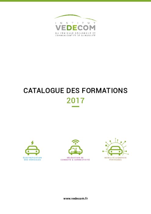 L’institut VEDECOM propose des sessions de formation en lien avec ses 3 domaines de recherche : électrification des véhicules, délégation de conduite et connectivité, éco-mobilité et énergie partagées. Le contenu de ces formations est adapté à différents publics : des modules de niveau expert complètent ainsi des modules de sensibilisation.