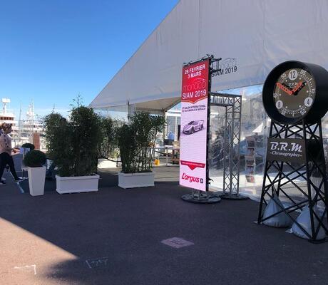 Enfin le lieu, emplacement mythique du Quai Albert Ier et la grande qualité et des immenses et lumineuses structures et aménagements qui ont été installés pour le Salon avec vue sur la mer sous un soleil printanier.