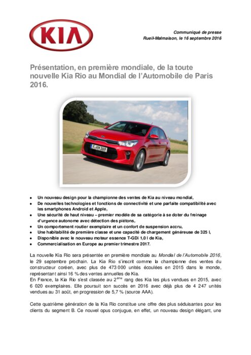 Mondial 2016: toute nouvelle Kia Rio (+vidéo)