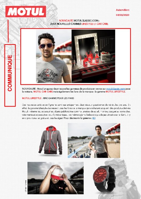 Motul propose deux nouvelles gammes de produits en vente sur motulclassic.com pour la voiture, MOTUL CAR CARE mais également les fans de la marque : la gamme MOTUL LIFESTYLE.
