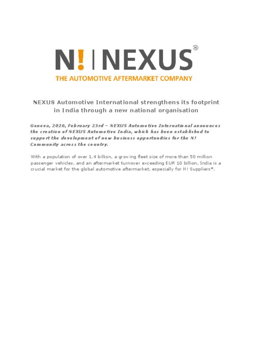 La création de NEXUS Automotive India répond directement à la demande croissante des membres et fournisseurs de N! qui souhaitent y établir une présence structurée. NEXUS Automotive India s'attaquera aux spécificités et aux défis du marché indien des pièces détachées automobiles, accélérant ainsi la croissance de la communauté locale.