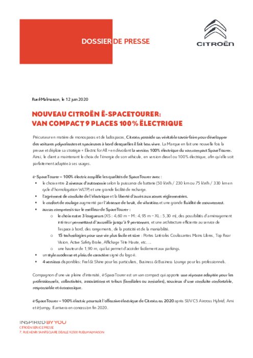 Précurseur en matière de monospaces et de ludospaces, Citroën possède un véritable savoir-faire pour développer des voitures polyvalentes et spacieuses à bord desquelles il fait bon vivre. La Marque en fait une nouvelle fois la preuve et déploie sa stratégie " Ëlectric for All " en dévoilant la version 100% électrique du van compact SpaceTourer...