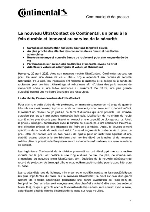 Avec son nouveau modèle UltraContact, Continental propose un pneu été avec une durée de vie « Ultra » longue répondant aux normes de sécurité habituelles. Pour cela, les ingénieurs ont repensé le mélange et le design de la bande de roulement pour combiner kilométrage et robustesse afin d’obtenir des performances de maniabilité sûres et une faible résistance au roulement. De même, une plus grande durabilité permet une meilleure économie des ressources.