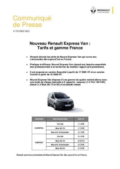 Nouveau Renault Express : à partir de 17.500 € HT