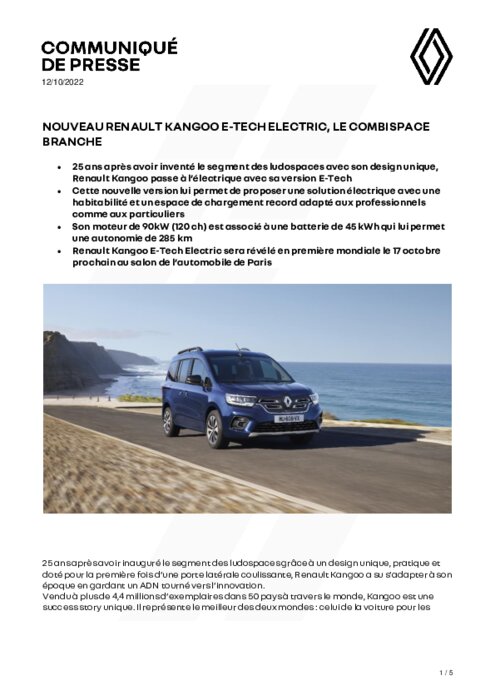 Nouveau Renault Kangoo E-Tech Electric, le Combispace branché