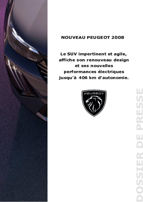 Constructeurs 04 mai 2023 - 04:06 Best-seller sur le marché des SUV du segment B depuis plus de 3 ans, le Peugeot 2008 franchit aujourd’hui une nouvelle étape en matière de design, de technologie et d’électrification. PDF (2 Mo) Télécharger