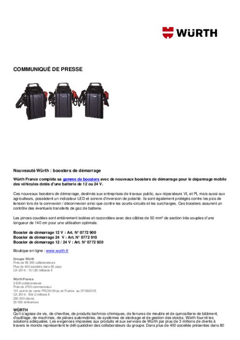 Nouveaux boosters de démarrage Würth