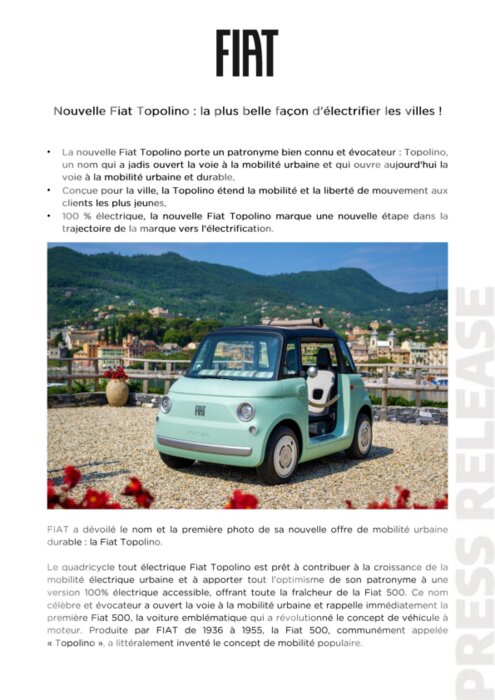 Nouvelle Fiat Topolino : une étape de plus vers l'électrification pour la marque