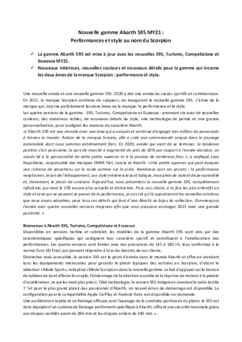 Nouvelle gamme Abarth 595 2021
