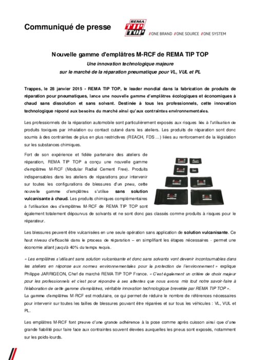 REMA TIP TOP, le leader mondial dans la fabrication de produits de réparation pour pneumatiques, lance une nouvelle gamme d’emplâtres écologiques et économiques à chaud sans dissolution et sans solvant. Destinée à tous les professionnels, cette innovation technologique répond aux besoins du marché ainsi qu’aux contraintes environnementales.