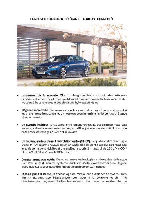 Plus dynamiques, les nouvelles Jaguar XF berline et XF Sportbrake proposent un design extérieur affirmé, un habitacle entièrement nouveau garni de matériaux luxueux et des dernières technologies embarquées connectées, ainsi que des mises à jour en permanence.