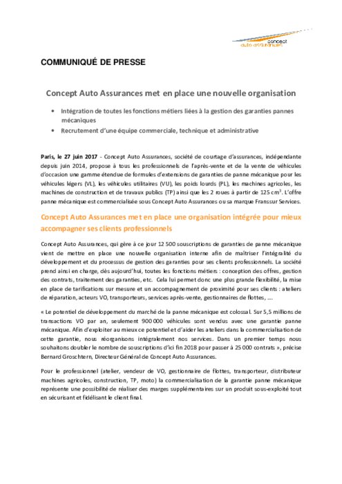 Concept Auto Assurances vient de mettre en place une nouvelle organisation interne afin de maîtriser l'intégralité du développement et du processus de gestion des garanties pour ses clients professionnels. Jean Marie Dibalszky vient de rejoindre Concept Auto Assurances en tant que Directeur Commercial.