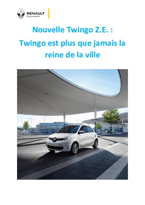 Avec Twingo Z.E., la petite citadine iconique de Renault lance sa motorisation 100 % électrique. Fun et facile à vivre, sa personnalité pétillante s’épanouit pleinement sur son terrain de jeu favori… L’électrique fait plus que jamais de Twingo la reine de la ville !