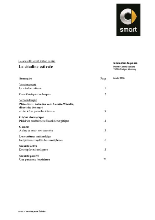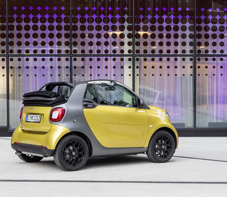 Le lancement de la nouvelle smart fortwo cabrio au printemps prochain va consacrer une version culte par excellence de la nouvelle gamme. Le cabriolet deux places arrivera en concession en février 2016. La liste de prix débute à 15 250 euros pour la version de 52 kW équipée de la boîte de vitesses à double embrayage twinamic. Un modèle avec boîte mécanique sera commercialisé ultérieurement.