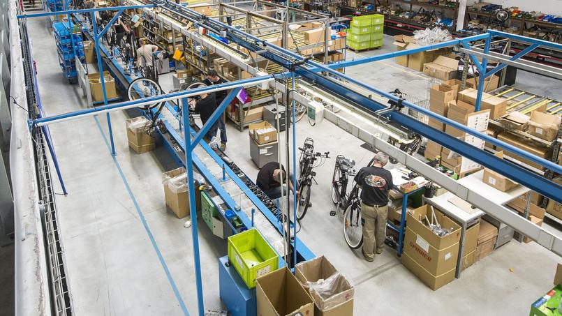 Jeudi, une quinzaine de salariés habillés pour l'occasion de pulls marins estampillés Solex travaillaient à l'assemblage des premiers VAE de cette marque, devant les élus locaux et les journalistes invités à visiter la rutilante usine de 4.000 m2.
