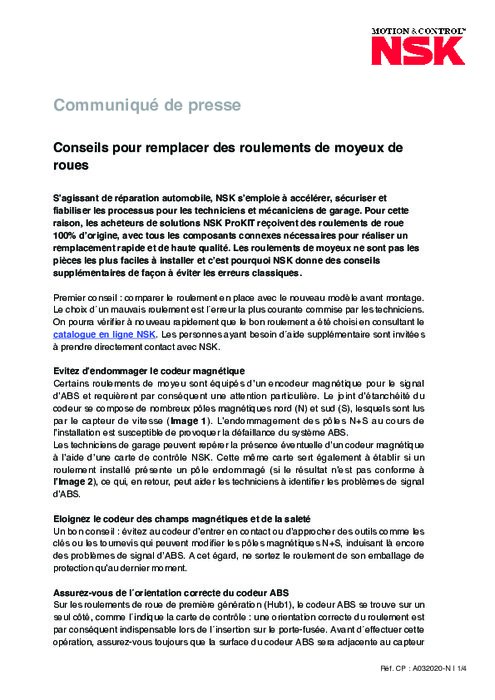 S’agissant de réparation automobile, NSK s’emploie à accélérer, sécuriser et fiabiliser les processus pour les techniciens et mécaniciens de garage. Pour cette raison, les acheteurs de solutions NSK ProKIT reçoivent des roulements de roue 100% d’origine, avec tous les composants connexes nécessaires pour réaliser un remplacement rapide et de haute qualité. Les roulements de moyeux ne sont pas les pièces les plus faciles à installer et c’est pourquoi NSK donne des conseils supplémentaires...