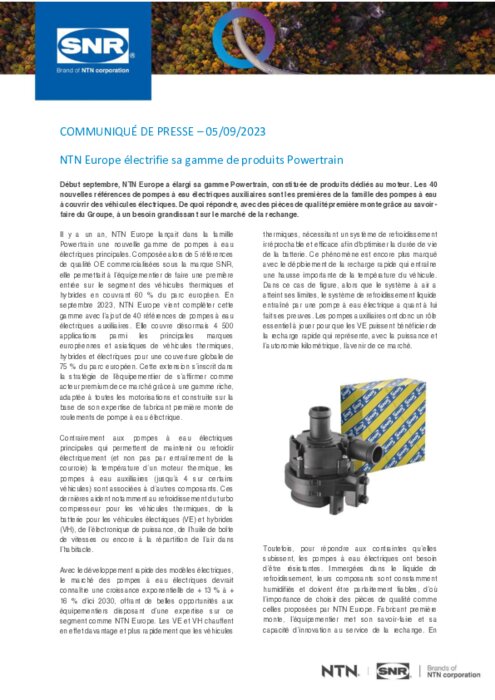 nouvelles références de pompes à eau électriques auxiliaires sont les premières de la famille des pompes à eau