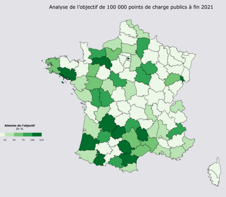 Le gouvernement a proposé cet objectif en bonne cohérence avec la projection attendue du parc de véhicules électriques et hybrides rechargeables, estimée à environ 1 million de véhicules début 2022 et le ratio d’usage permettant un accès à la recharge pour tous équivalent à 1 point de charge pour 10 véhicules sur le domaine accessible au public.
