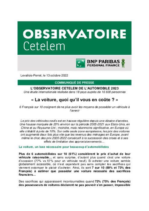 Selon cette enquête réalisée dans 18 pays, 7 automobilistes sur 10 estiment que rouler en voiture nécessite des sacrifices financiers, mais 72% (75% en France) déclarent ne pas pouvoir s'en passer.