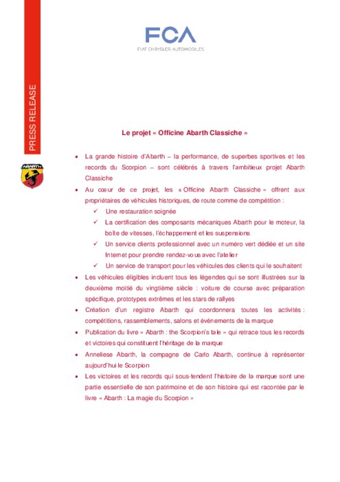 Abarth Classiche voit le jour. C’est un projet à long terme qui implique l’ensemble de l’univers de la marque du Scorpion. En effet, cette initiative repose sur plusieurs éléments, en commençant par le centre de restauration qui a été ouvert le 18 novembre dernier à l’Officina Abarth de Mirafiori à Turin. Au cœur de l’activité préparation des voitures de série comme celles de course, une zone a été aménagée et dédiée à la restauration des modèles Abarth historiques des clients.