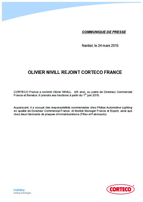 OLIVIER NIVILL REJOINT CORTECO FRANCE