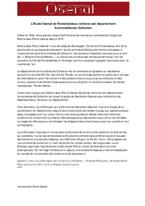 C’est Monsieur Louis Mompeu qui a été nommé Secrétaire Général. Il aura la charge de la coordination du département depuis les contacts avec les vendeurs jusqu’aux opérations post sales, en passant par tout ce qui fait qu’une vente puisse se réaliser dans les meilleures conditions et notamment la création des catalogues qui deviennent aujourd’hui de véritable ouvrages de référence qui enrichissent les étagères des collectionneurs par leur qualité et leur iconographie.