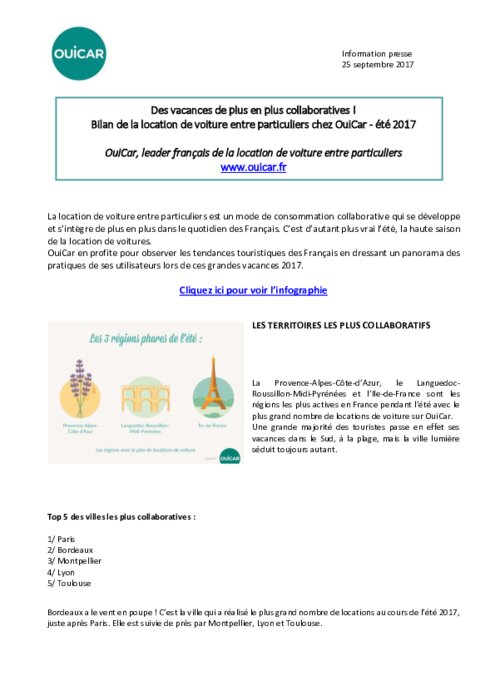 OuiCar dresse son bilan de l'été 2017 (+infographie)