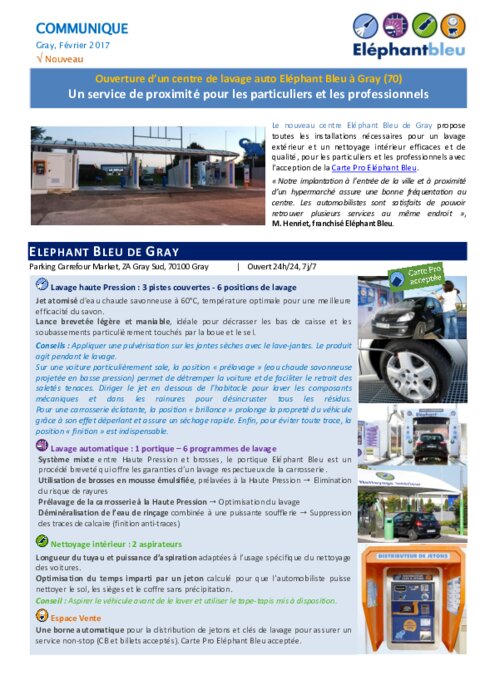 Le nouveau centre Eléphant Bleu de Gray propose toutes les installations nécessaires pour un lavage extérieur et un nettoyage intérieur efficaces et de qualité, pour les particuliers et les professionnels avec l’acception de la Carte Pro Eléphant Bleu.