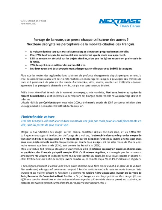Partage de la route, que pense chaque utilisateur des autres ? (+ infographie Nextbase)