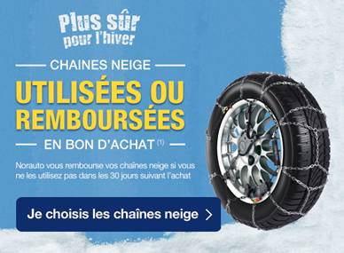 En cas de non utilisation des chaînes neige, Norauto rembourse* en bons d’achat.