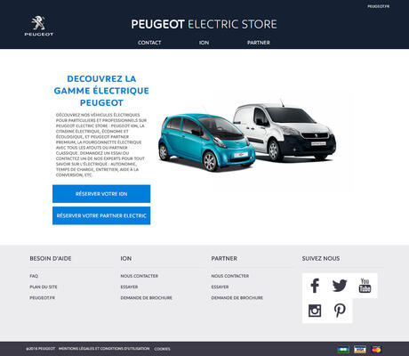 Depuis le 1er juillet 2016, le site de e-commerce " PEUGEOT Electric Store " s’enrichit avec une nouvelle offre : le PEUGEOT PARTNER Electric est désormais disponible, aux côtés de l’offre globale de mobilité Electric Box, composée d’une PEUGEOT iOn et d’un vélo à assistance électrique.