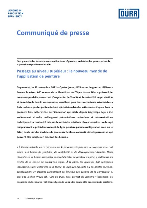 Quatre jours, différentes langues et différents fuseaux horaires. À l’occasion de la 12e édition de l'Open House, Dürr a présenté de nouveaux produits permettant d’augmenter l’efficacité et la rentabilité en production et de réduire le besoin en ressources aussi bien pour les constructeurs automobiles à forte cadence que les petites start-up spécialisées dans les voitures électriques...