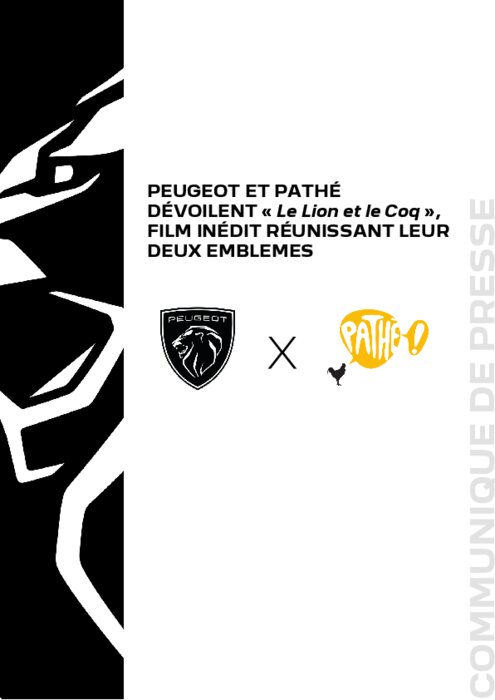 Un film inédit célébrant un partenariat emblématique : Peugeot et Pathé dévoilent Le Lion et le Coq, un film original qui met en scène pour la première fois le lion Peugeot et le coq Pathé, symboles forts du patrimoine français, pour incarner leur partenariat et leurs valeurs communes.